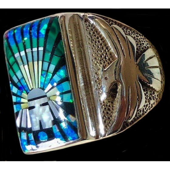 Sterling zilveren (925) ring bezet met fijn geslepen halfedelstenen die een Kashina afbeelden.