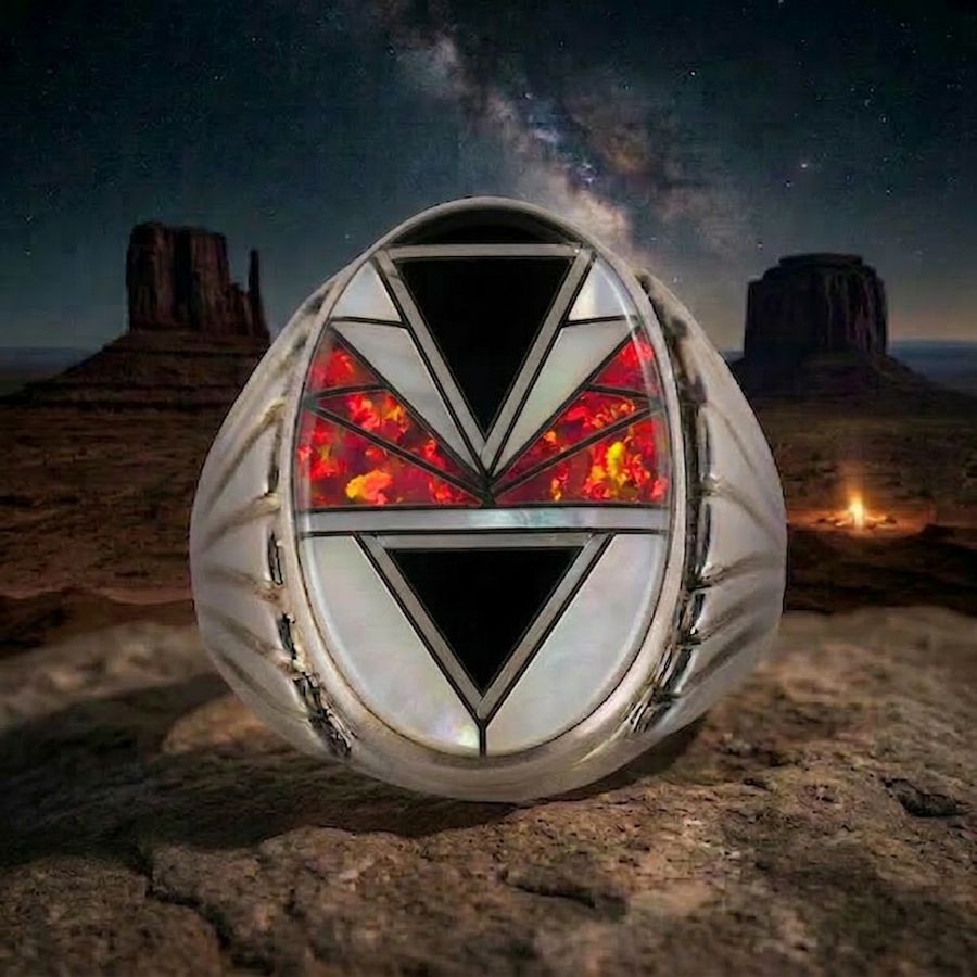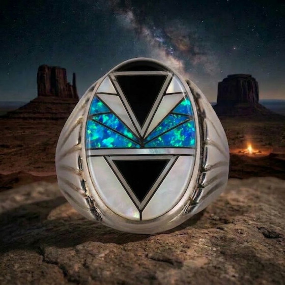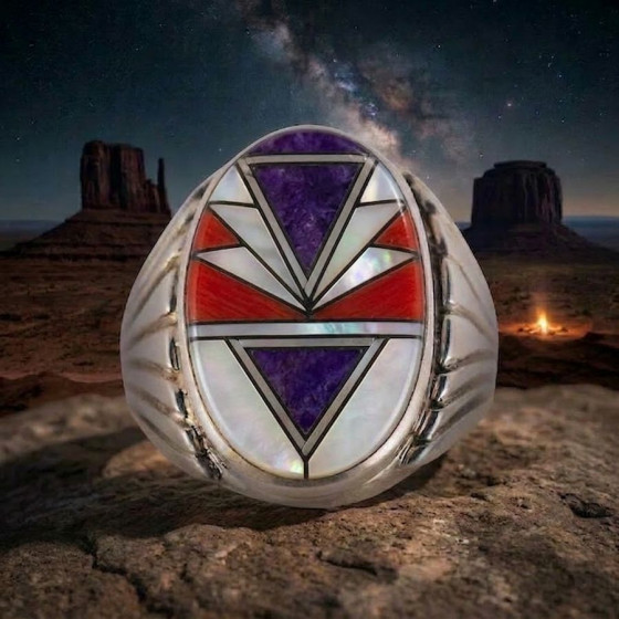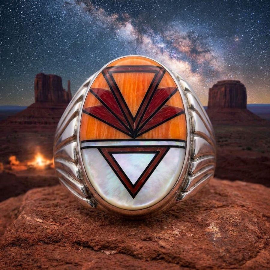 Navajo ovale zilveren ring met pijl, verkrijgbaar in diverse kleuren, Voor mannen